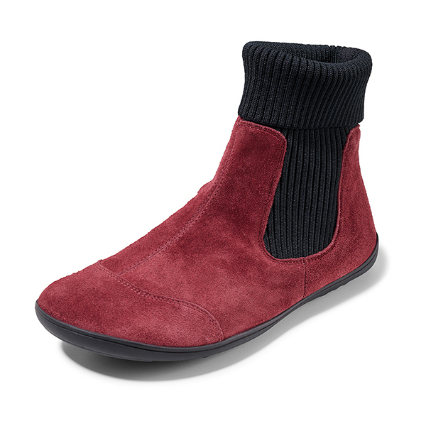 Barfußstiefel mit dehnbaren Strickeinsätzen und gestricktem Schaftrand