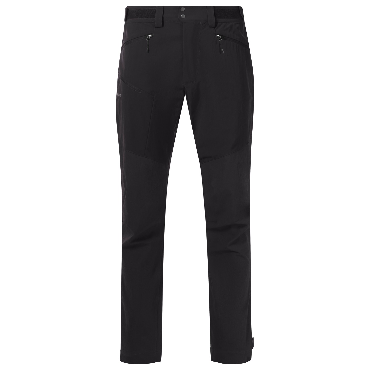 - Gürtelschlaufen, verstärkte Knie, verstellbare Beinabschlüsse, verstellbarer Hüftbund, vorgeformte Knie, Zwickeleinsatz im Schritt