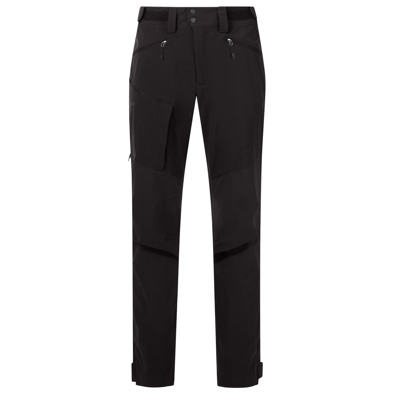 - Gürtelschlaufen, verstärkte Knie, verstellbare Beinabschlüsse, verstellbarer Hüftbund, vorgeformte Knie, Zwickeleinsatz im Schritt