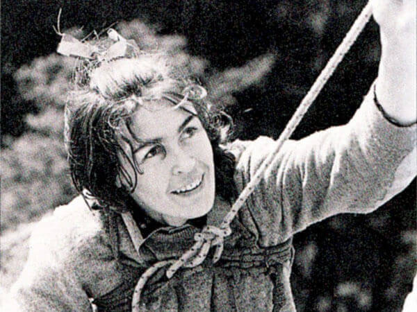 Wanda Rutkiewicz im Jahre 1968 mit einem modernerem Seil und einer einfachen Torso-Sicherung.