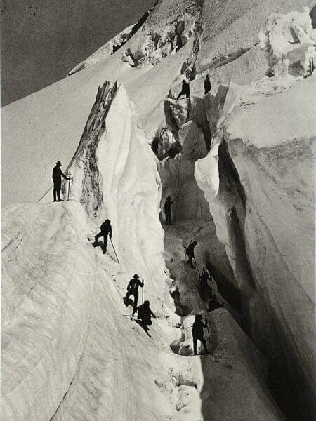 Die Durchquerung einer Gletscherspalte am Mont Blanc im Jahre 1862. Seilschaft? Fehlanzeige.