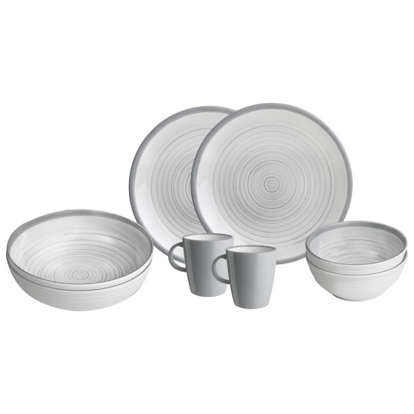 - 2 x Ø 25 cm Teller, 2 x 30 cl Tassen, 2 x Ø 21 cm Teller, 2 x Ø 15 cm Schüsseln