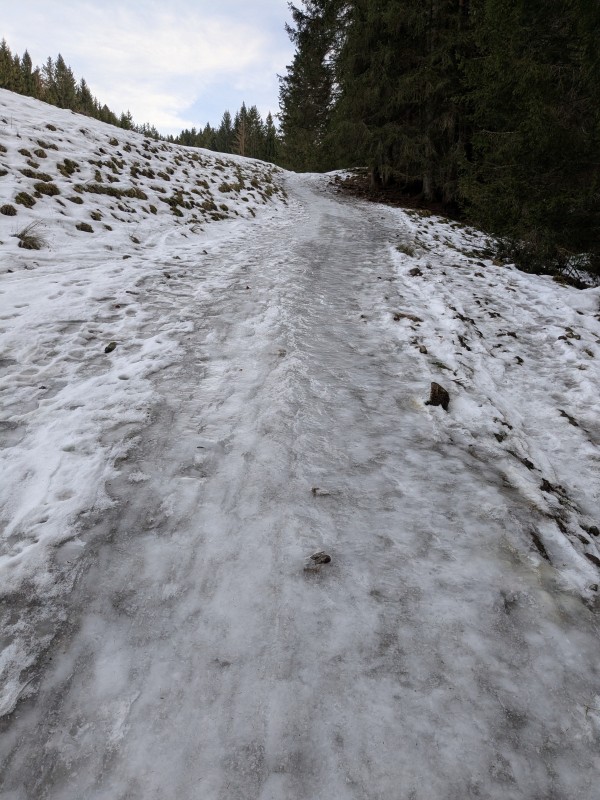 Derzeit herrschen im Allgäu besondere Bedingungen, Tauwetter und Nachtfrost. Die Wanderwege sind z.T. spiegelglatt