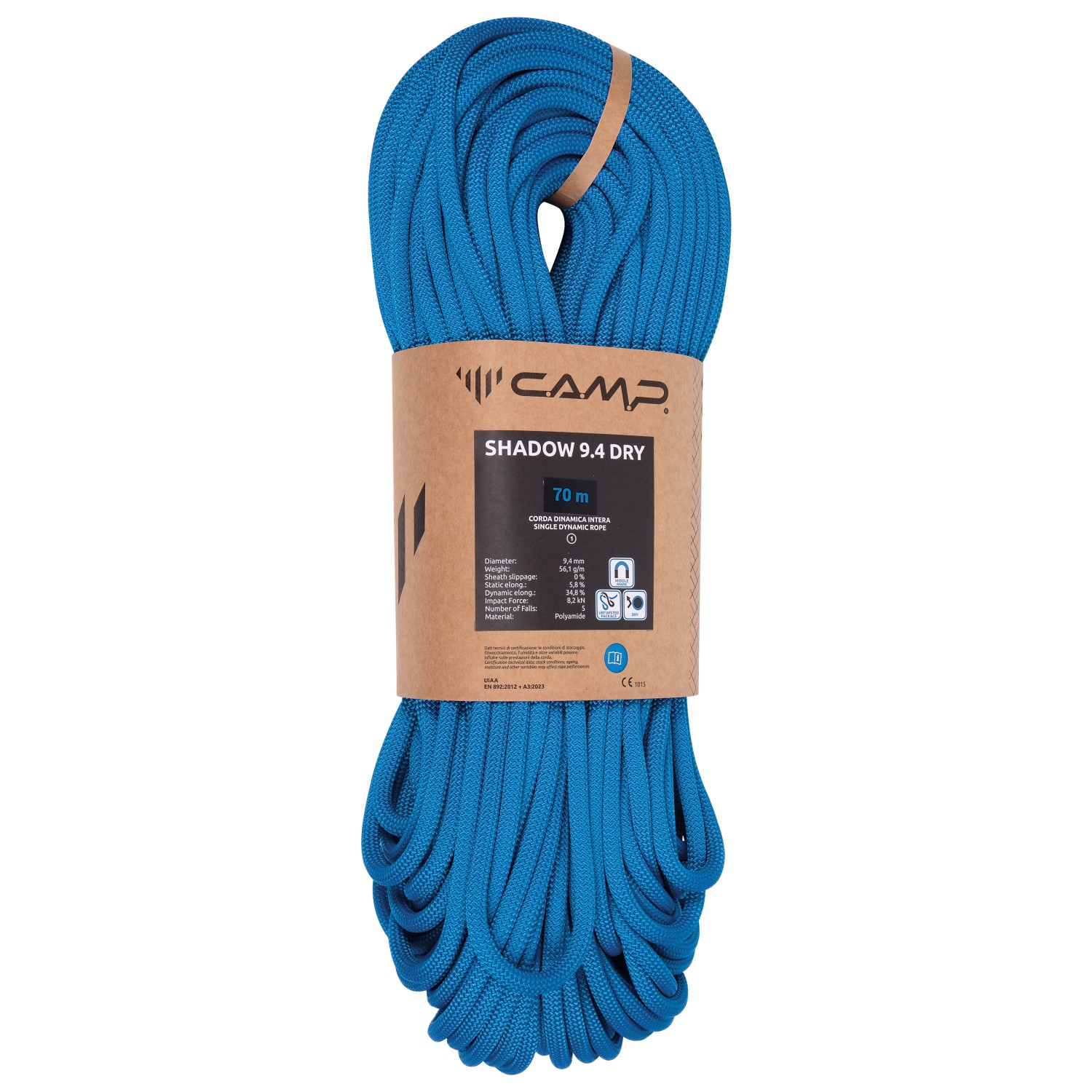 Das Shadow 9.4 Dry von C.A.M.P. ist ein hochwertiges Einfachseil, das Dir eine ausgewogene Kombination aus geringem Gewicht, angenehmem Handling und hoher Zuverlässigkeit bietet. Mit seinem mittleren Durchmesser von 9,4 mm eignet es sich ideal für den intensiven Einsatz im Klettergarten ebenso wie für alpine Touren.