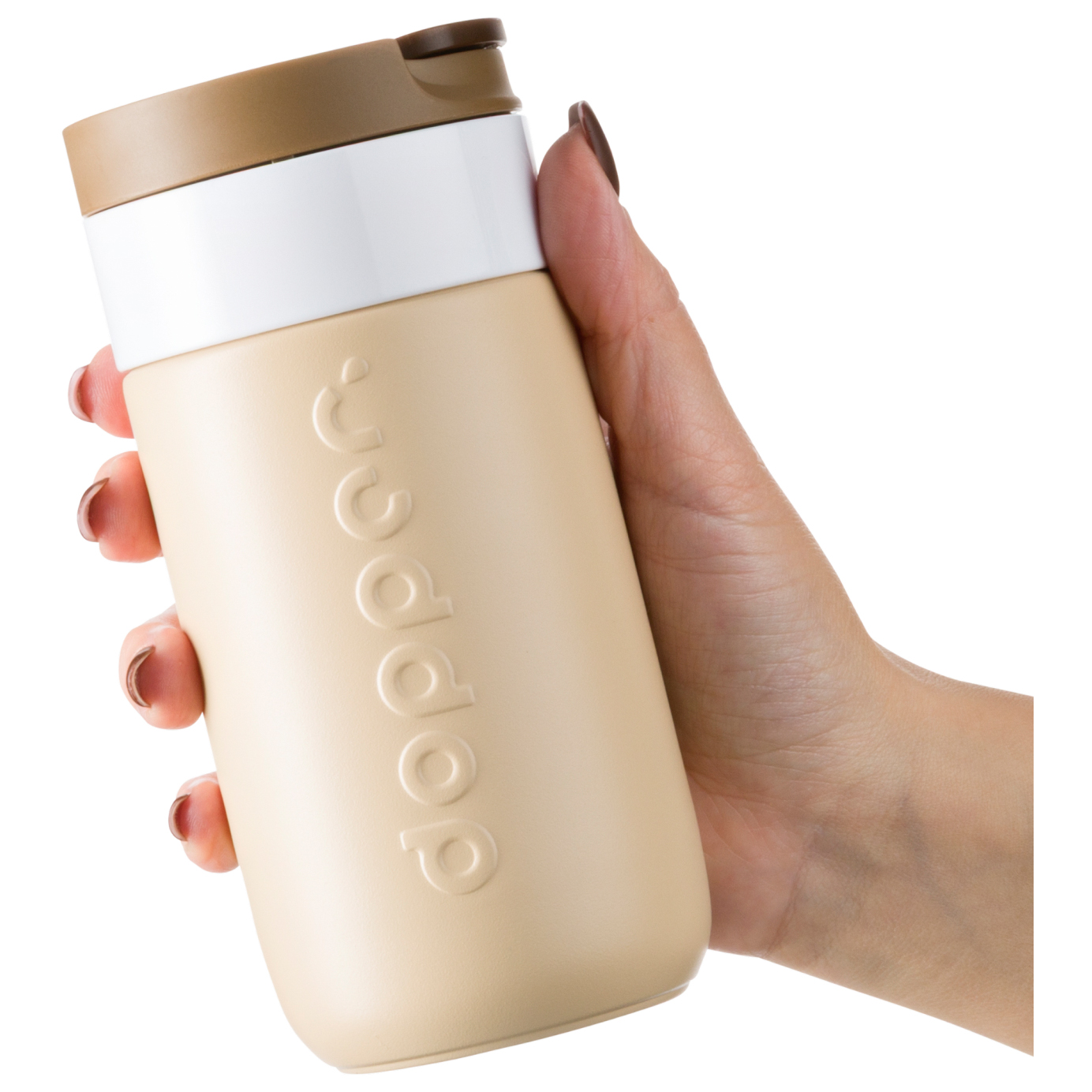 Der Dopper Travel Mug Isolierbecher ist klar auf den Alltag unterwegs ausgelegt. Ob auf dem Weg zur Arbeit, beim Spaziergang oder im Zug. Sein kompaktes Format passt problemlos in Rucksack, Tasche oder Getränkehalter. Durch die schlanke Form liegt der Becher gut in der Hand und wirkt nicht klobig, selbst wenn Du ihn länger mit Dir herumträgst.