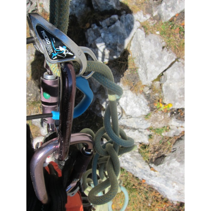 Das Seil ist unglaublich steif, fast schon mit einer Aramidschnur zu vergleichen, und geht somit kaum durch das mitgelieferte Sicherungsgerät. Des Weiteren krangelt es extrem, ja bildet sogar schwer zu entfernende Knoten und ist somit kaum zu handeln. Auch beim Abseilen hat man große Mühe voranzukommen. Anfangs dachten wir, diese Probleme würden sich nach kurzer Zeit regeln, jedoch konnten wir auch nach langer Benutzung keine Besserung feststellen.