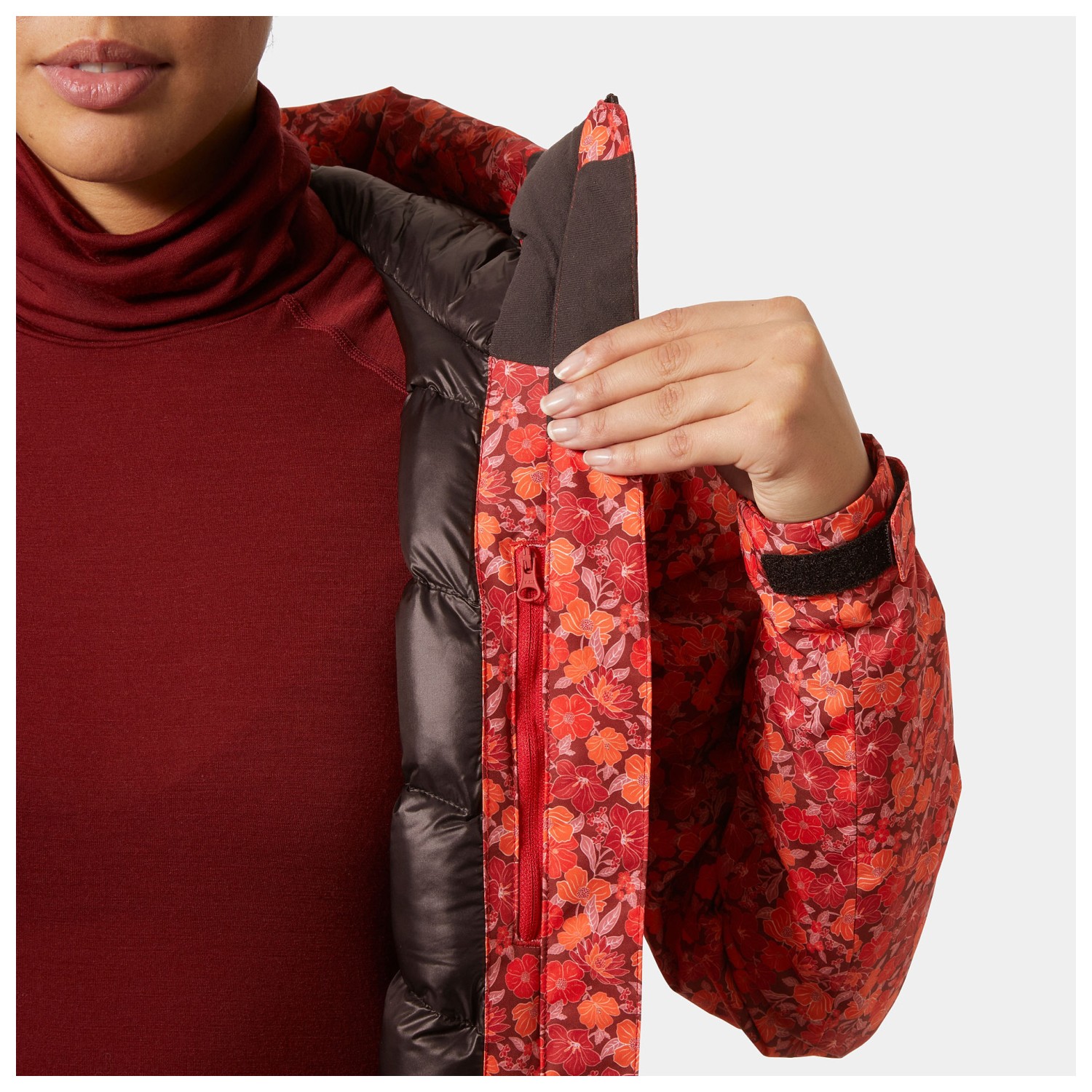- Gamaschen an den Ärmelabschlüssen, integrierter RECCO-Reflektor, Klettverschlüsse an den Ärmeln, Kordelzug im Saum, All-over-Print, Stehkragen
