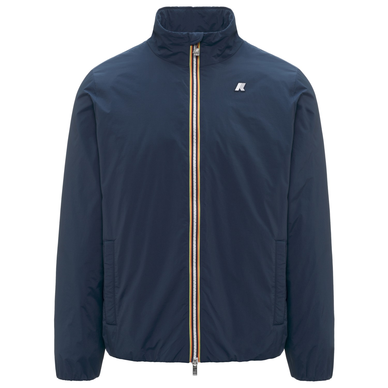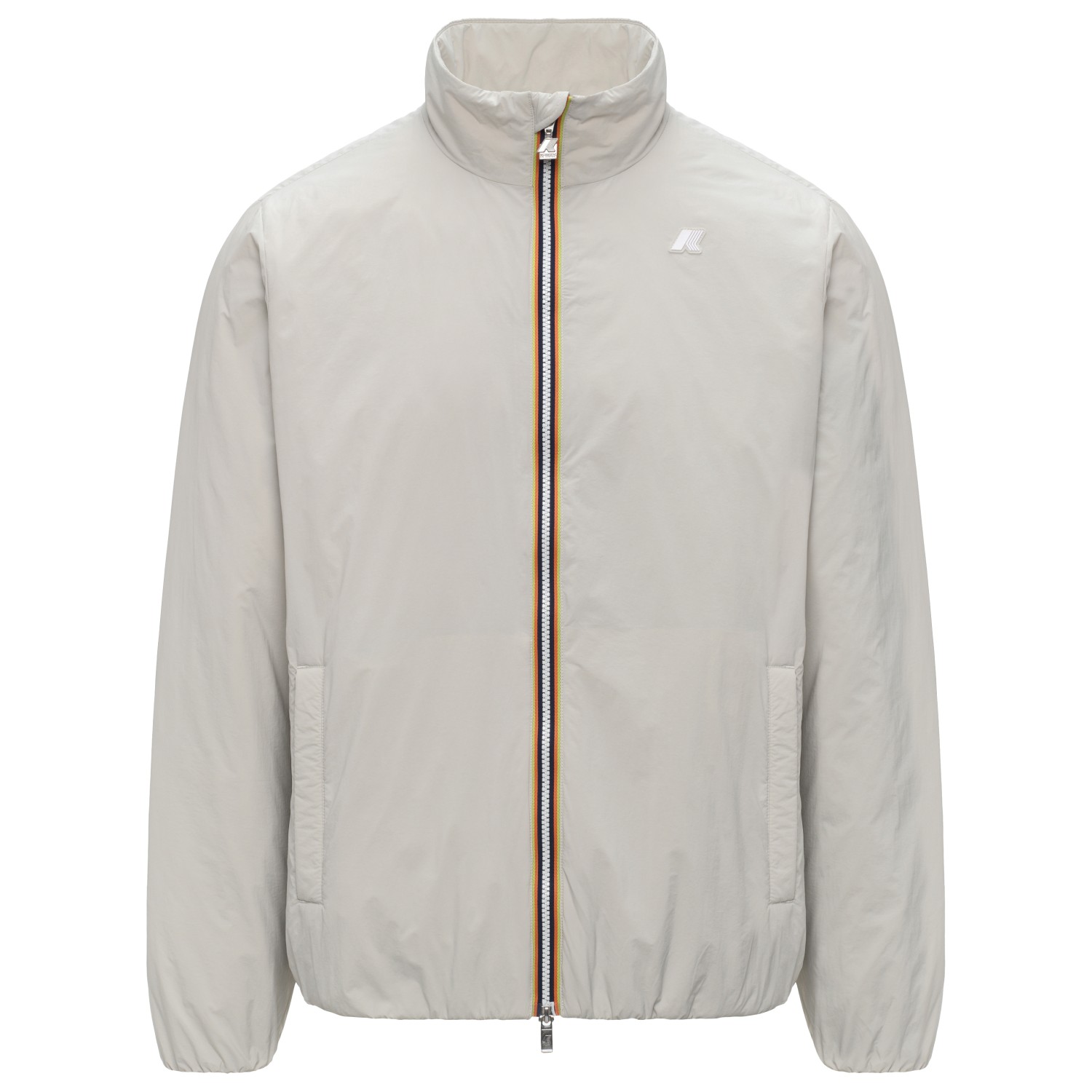 - elastische Ärmelbündchen, Kordelzug im Saum, Logopatch, Stehkragen