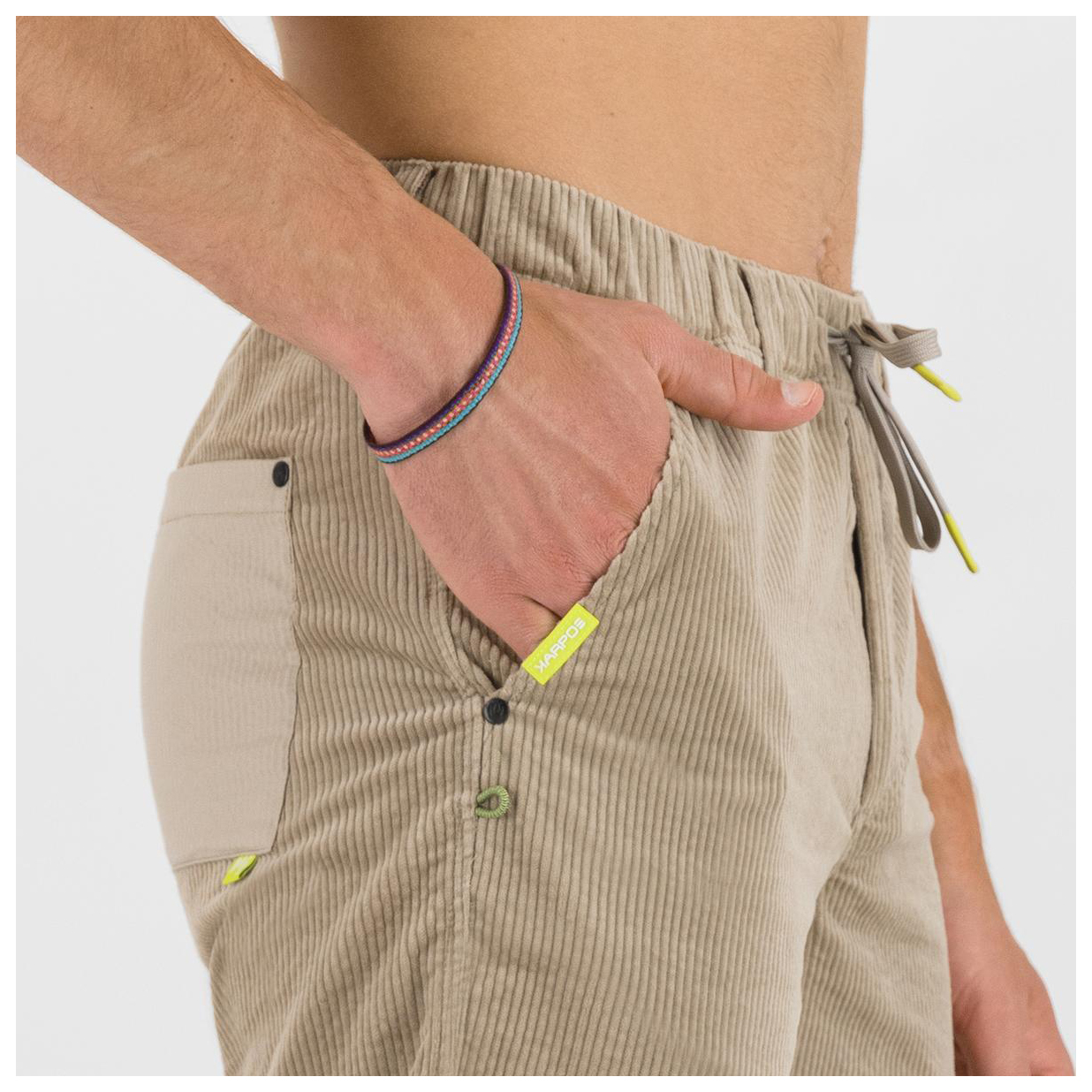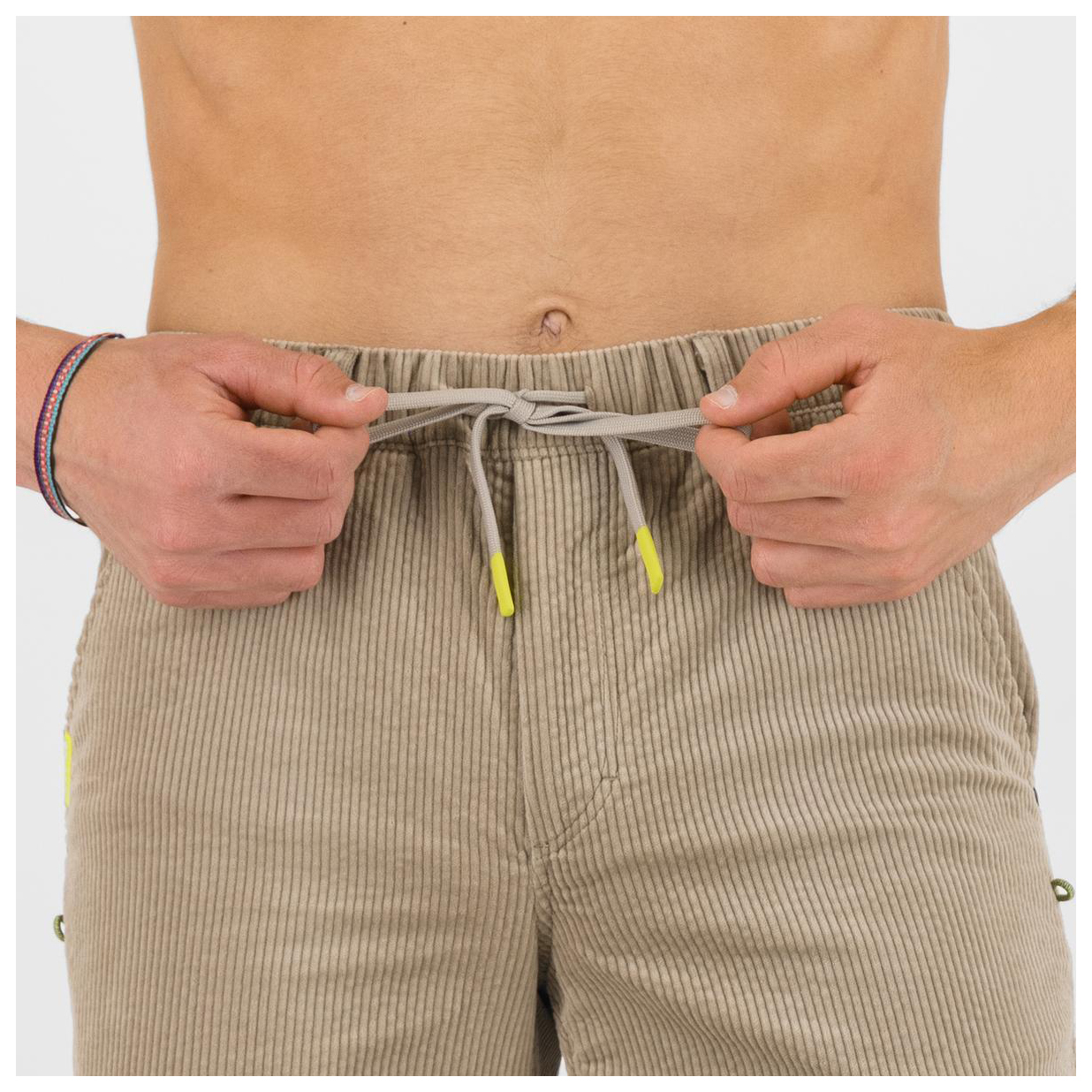 - elastischer Hüftbund, Gürtelschlaufen, mit Kordelzug