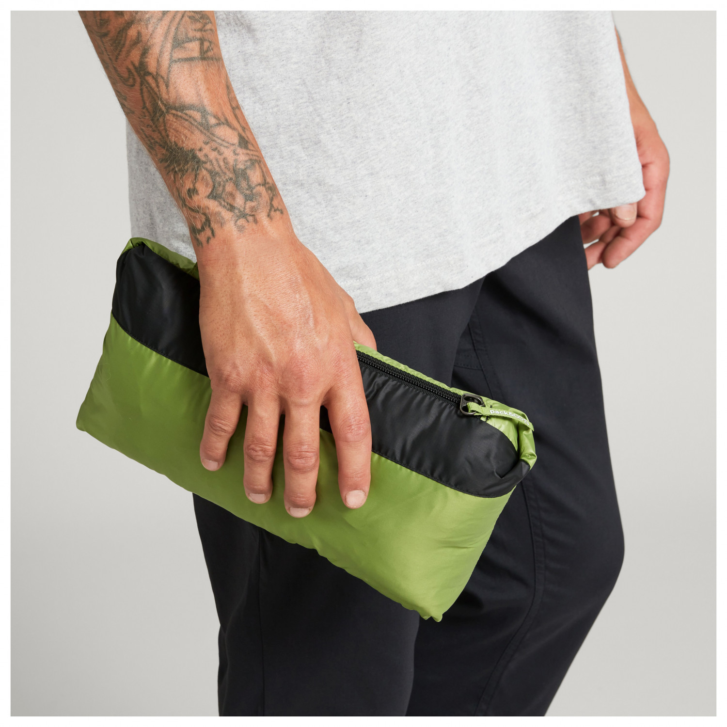 - elastische Innenbündchen, gesticktes Logo, in eigener Tasche verstaubar, Stehkragen