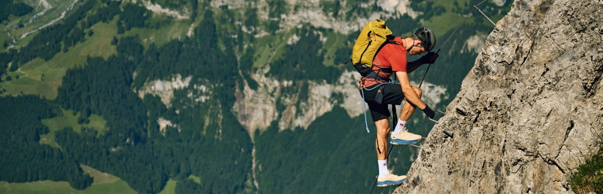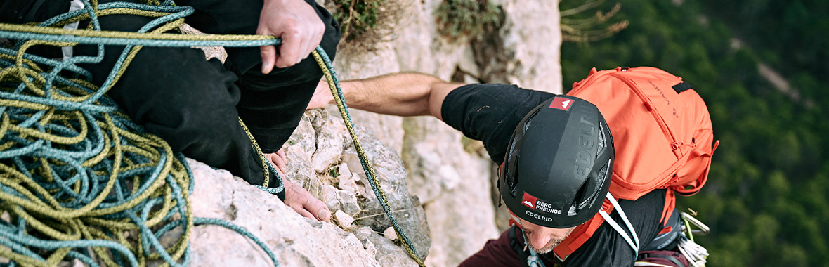 Welche Ausrüstung Du beim Klettern brauchst, hängt vom genauen Einsatzzweck ab. Absolute Basics sind natürlich neben Deinen Schuhen ein Klettergurt, Seil und Sicherungsgerät mit Karabiner. Je nach Umgebung, Erfahrungslevel und Budget variiert der Anspruch an die Ausrüstung. In unserem Shop findest Du eine große Auswahl an Kletterhelmen, Karabinern, Expresssets, Schlingen, Reepschnüren und Kletterrucksäcken – für jede Route und jedes Ziel das passende Equipment.