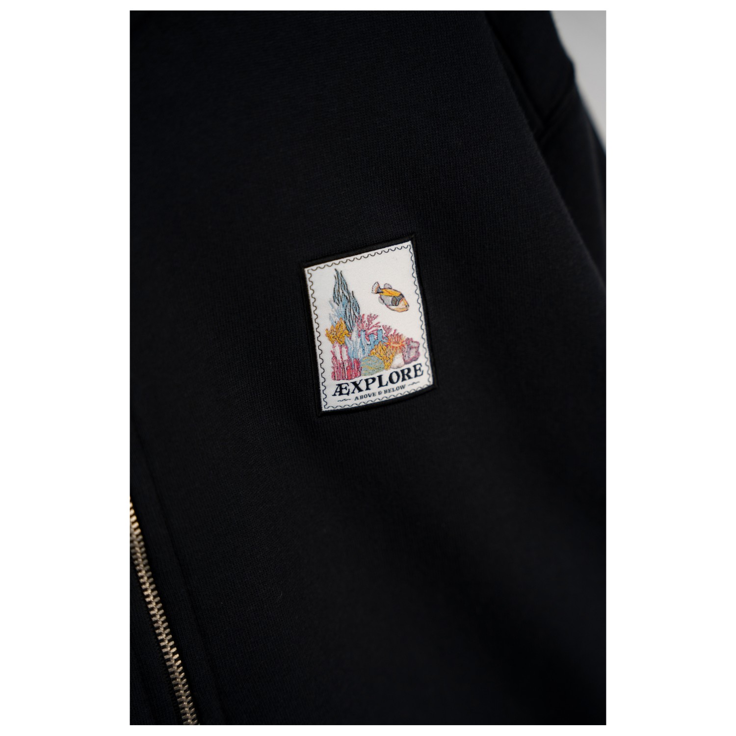 - elastische Ärmelbündchen, Kordelzug im Saum, Logopatch, Stehkragen