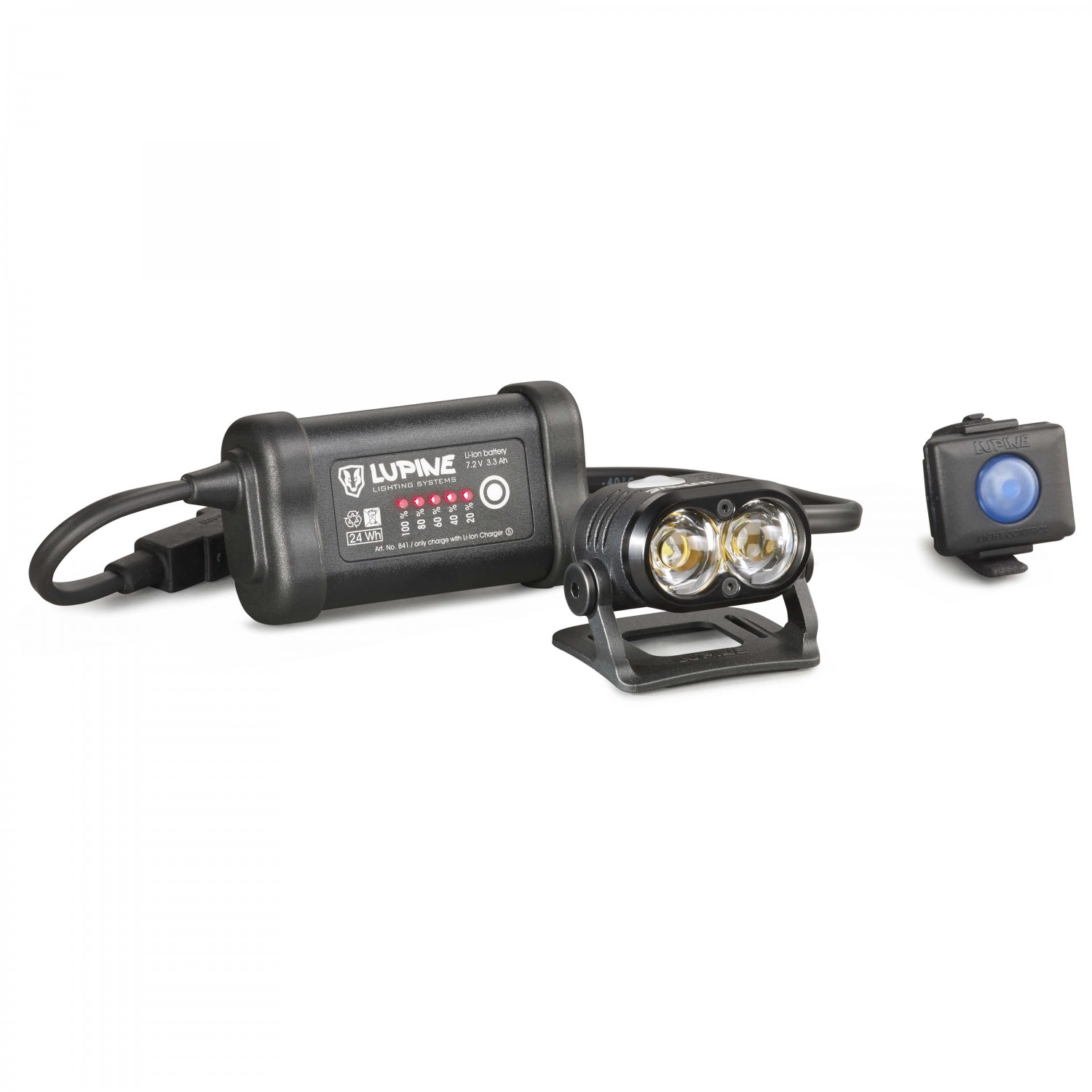 - mit Bluetooth-Fernbedienung; Batteriestandsanzeige am Akku; div. Befestigungsriemen; Halterung für Fernbedienung