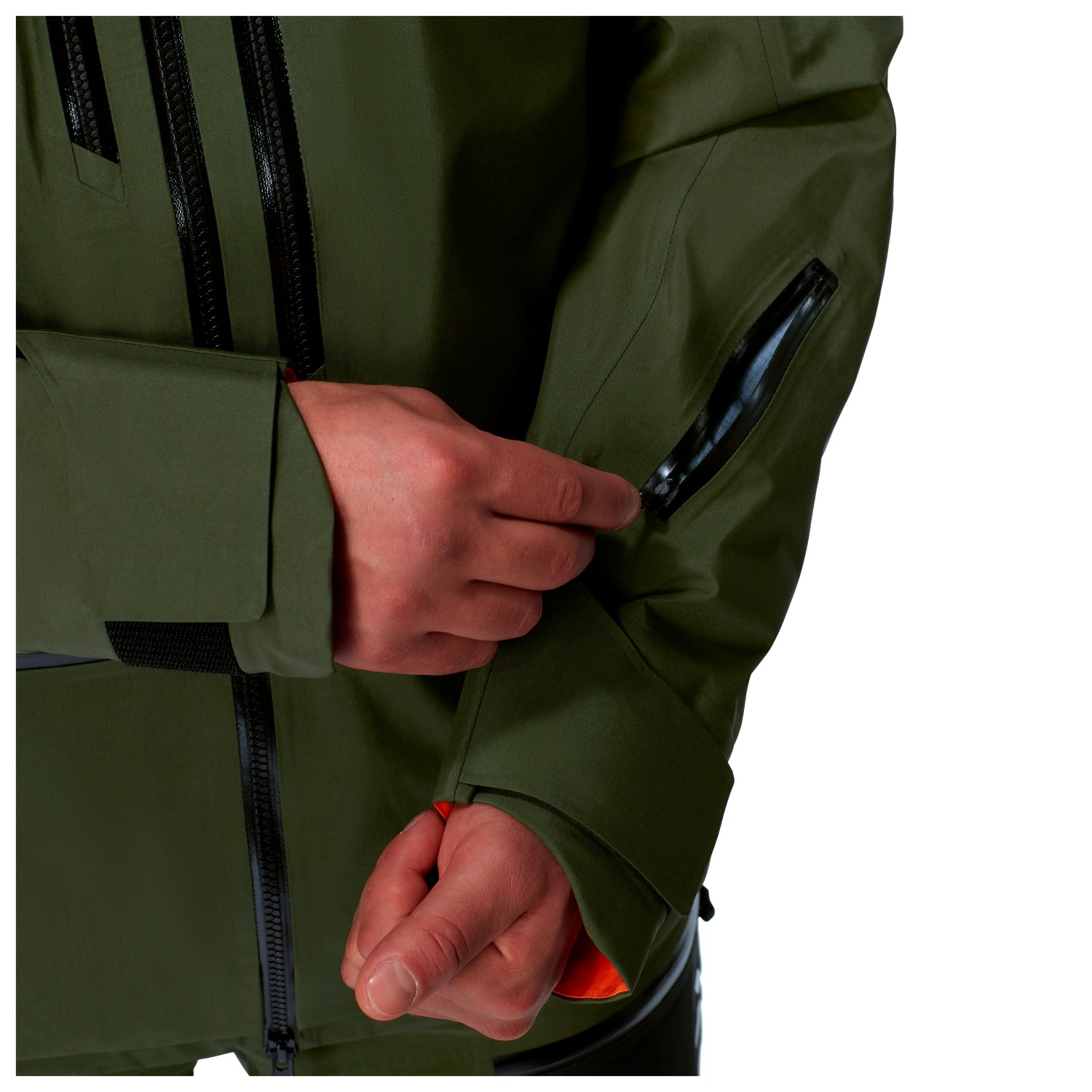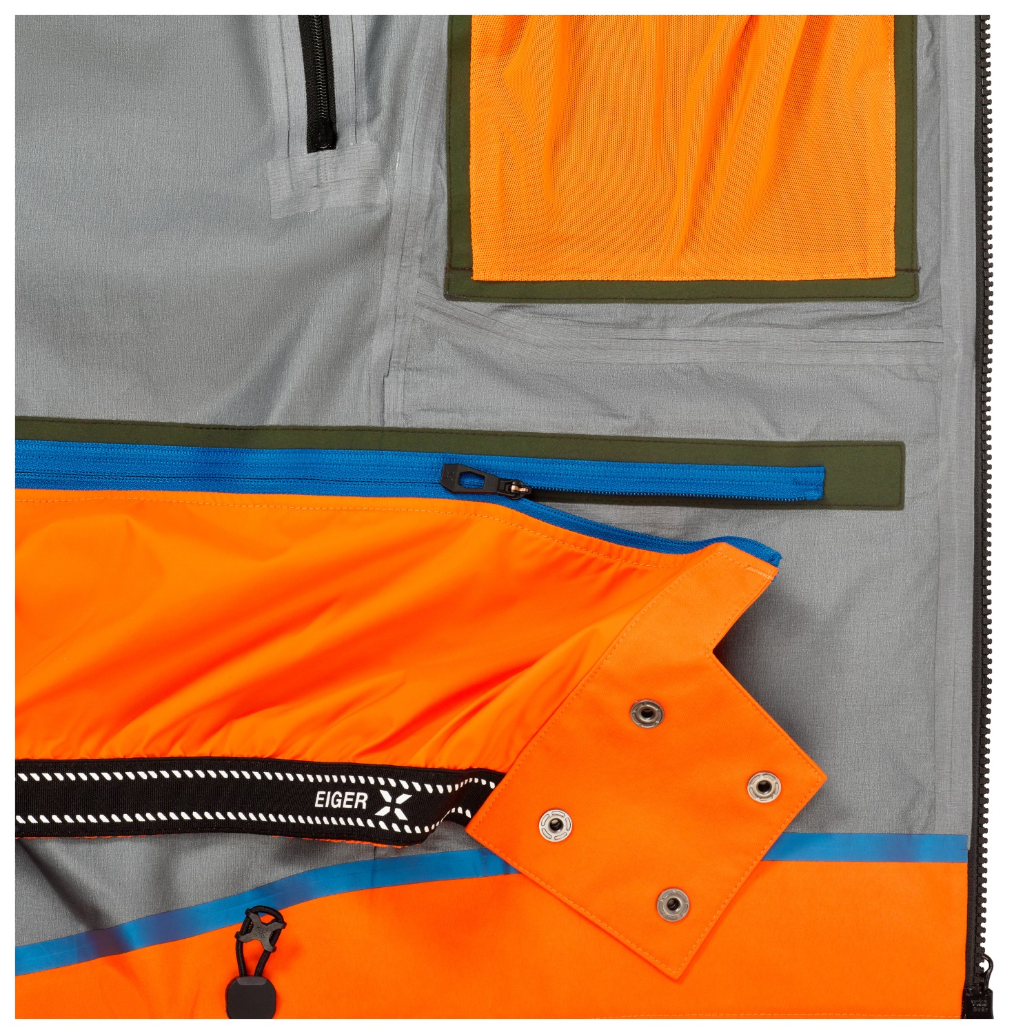 - 1 Innentasche, 1 RV-Innentasche, 2 RV-Brusttaschen, 2 RV-Fronttaschen