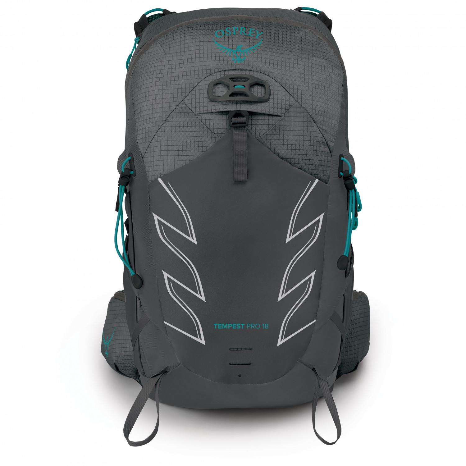 - 2 seitliche Mesh-Fächer, Befestigung für Trekkingstöcke, Hüftgurttasche, Stretchfach