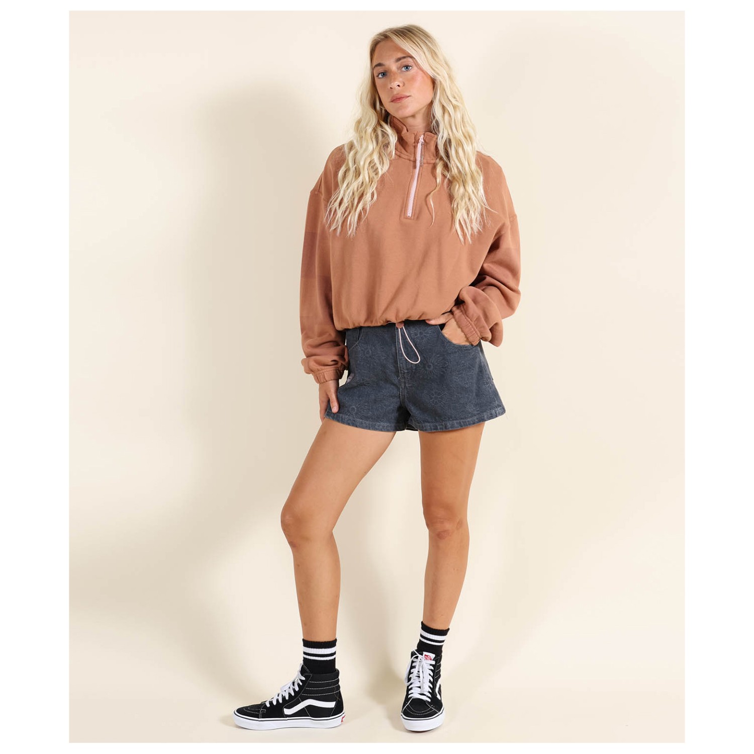 - Kordelzug im Saum, Logoprint, Stehkragen
