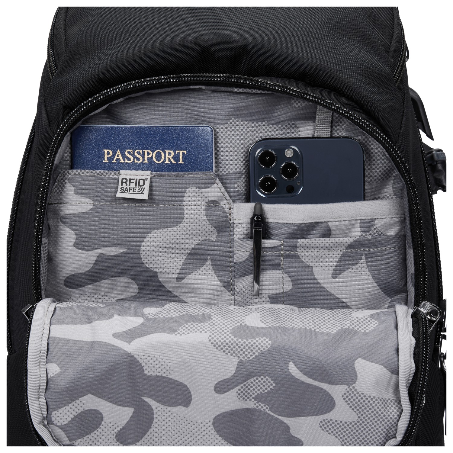 Robuster Rucksack zum Reisen mit ToughZip Technologie und eine RFID‑Tasche