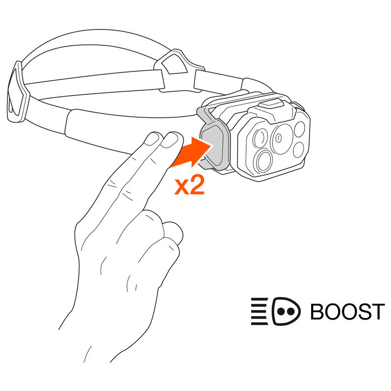 - 4 verschiedene Leuchtmodi, Batteriestatusanzeige, Blinklicht, Boost-Modus, REACTIVE LIGHTING, Rotlicht