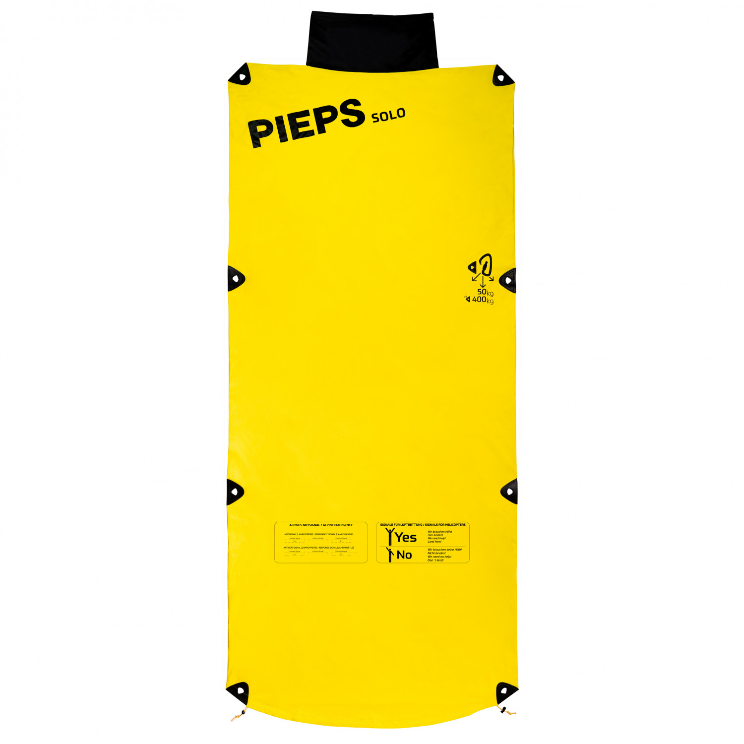 - bedruckt mit alpinen Notsignalen; verstärkte Ösen