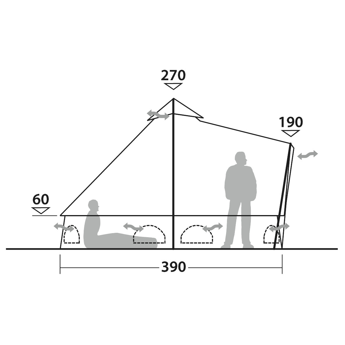 - 650 x 390 x 190-270 cm (L x B x H)