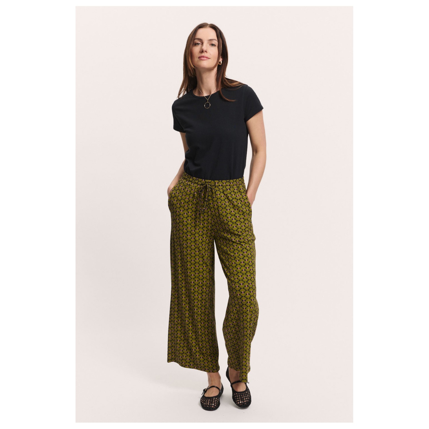 - elastischer Hüftbund, Kordelzug