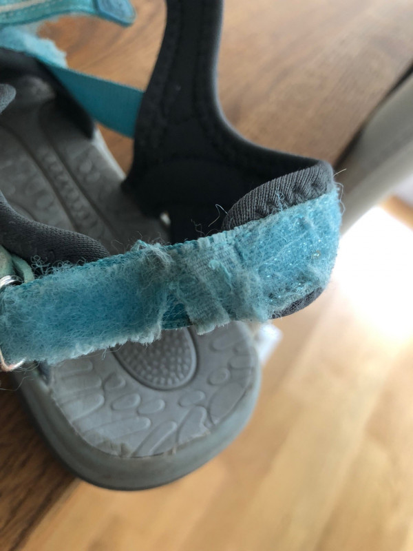 Generell zufrieden mit dem Kauf. Im Vergleich zu Sandalen von T... fusseln hier leider die Ränder der Bänder schnell aus, so dass der Schuh relativ rasch nicht mehr gut aussieht. Für Kindergarten, Wanderungen etc. aber immer noch gut zu gebrauchen. Ansonsten keine Mängel. Passt gut, ist bequem, wird gerne angezogen.