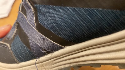 Vorne die Schuhkappe ist nach wenigen Tagen schon abgerieben und die Nähte lösen sich an den Enden.